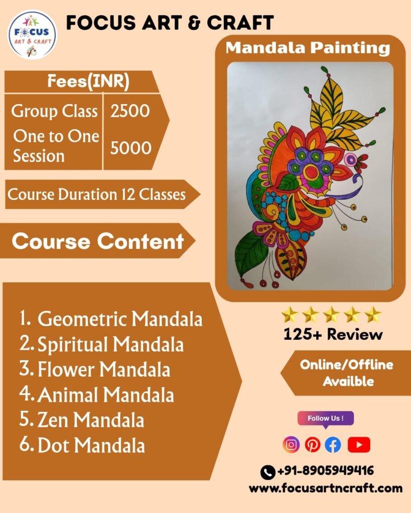 Mandala painting is an intricate art form featuring geometric patterns and circular designs that symbolize unity,